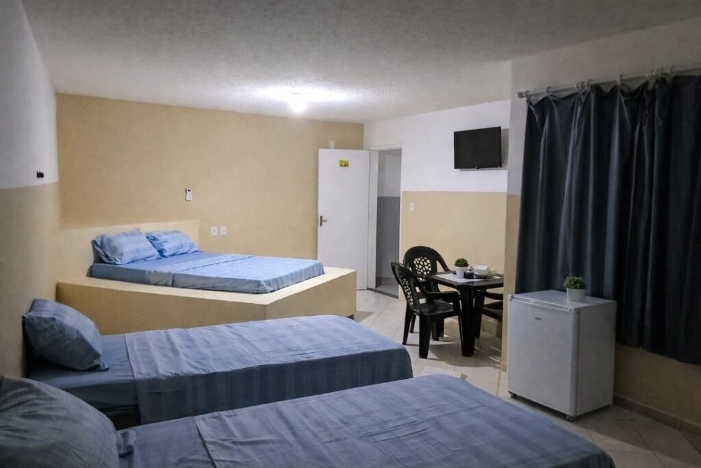 No Solar dos Lusitanos, o conforto vem do essencial. Paredes que guardam o silêncio, lençóis lavados com cuidado, o frio do ar condicionado após um dia quente de São Luís. Cada quarto oferece seu frigobar, sua Smart TV com streaming, seu cantinho de descanso. É a simplicidade que faz sentido quando você quer estar no centro de tudo, sem pagar o preço do centro. Apenas o necessário, sempre limpo, sempre funcionando.